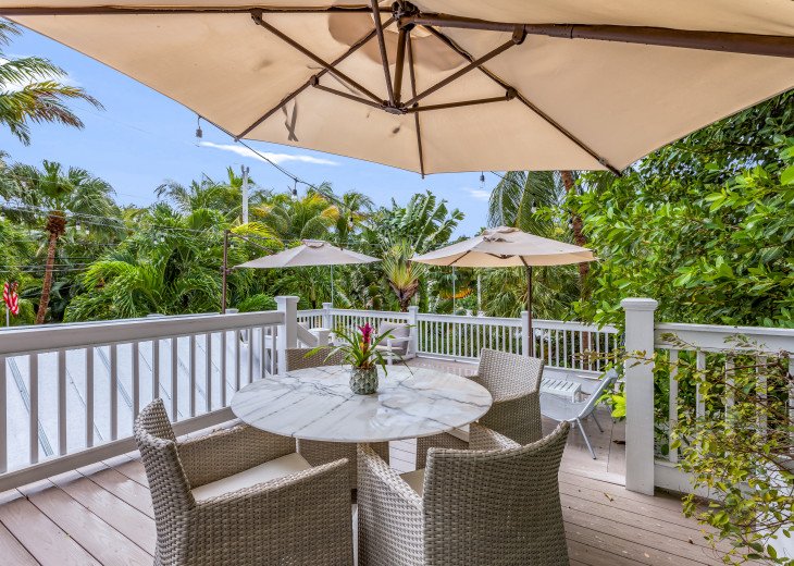 This rental has a farmhouse charm. It was built in the 1890s and has a porch off every bedroom. Indoor and outdoor living spaces make this the perfect warm weather getaway. There is also a private pool and huge roof deck with beautiful string lights to relax and have a nightcap. This house offers a true Key West experience.