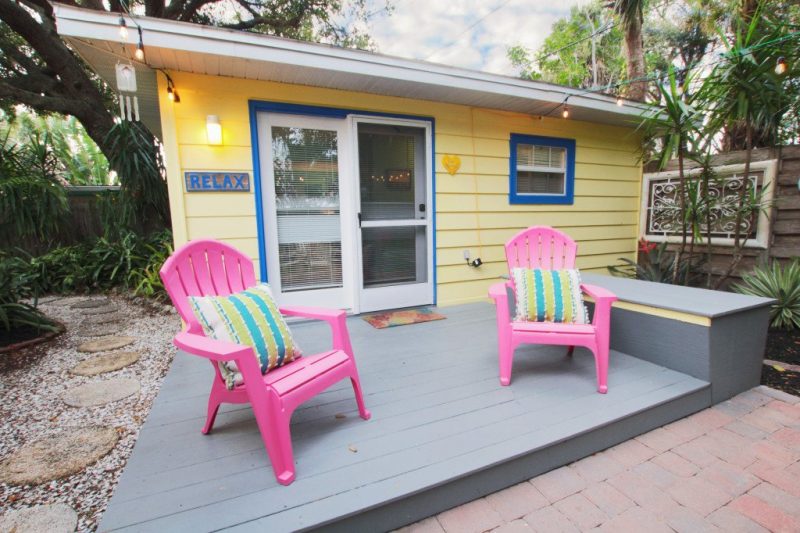 About the rental: This studio sleeps up to two people and is in a quiet neighborhood on Palm Island. It has a beautiful private brick courtyard and is a quick walk to the beach and restaurants. They offer bikes and beach chairs with the rental, as well as linens, towels and a fully equipped kitchen. Everything you could possibly need for a long term rental. As an added bonus, they also allow pets with an additional deposit.