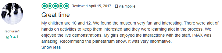 The IMAX here is amazing, as well as the planetarium show and many cool exhibits and demonstrations. Want to learn about the science of the Cuban sandwich? That is a current featured program, along with ropes courses and so much more!