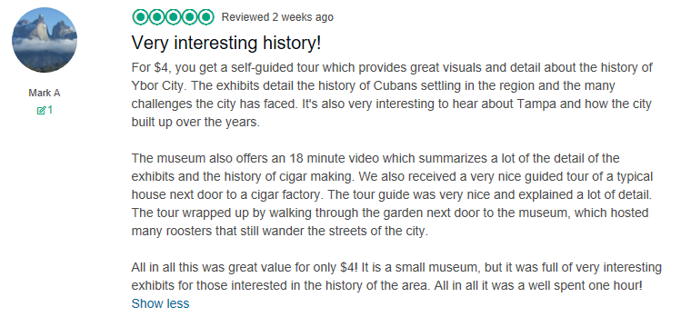The mission of this museum is to preserve, promote, and celebrate the unique cultural heritage of Ybor City and support the Ybor City State Park. Learn bout the history of the city with educational programs and exhibits. If you’re a history buff then you are in for a treat!
